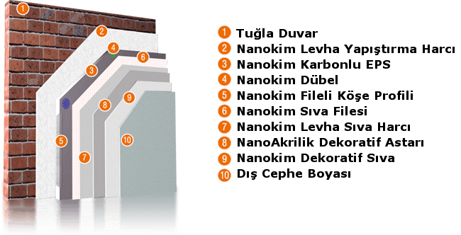 Dekoratif Dış Cephe Kaplama Sıvası: Isı yalıtım sıvalarını kaplayarak dekoratif bir görüntü elde etmek amacıyla kullanılmaktadır.